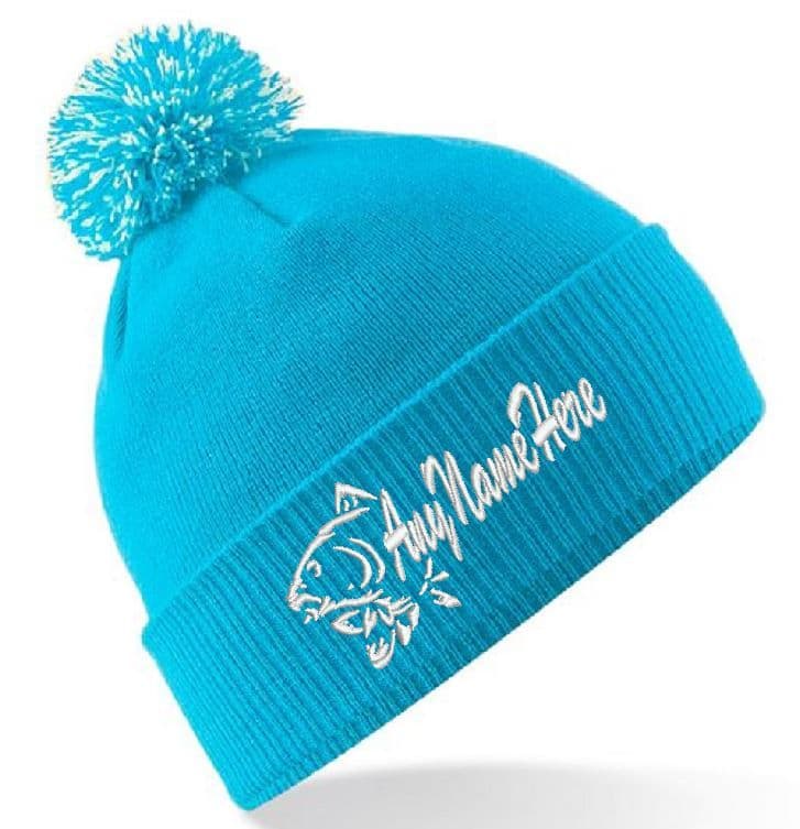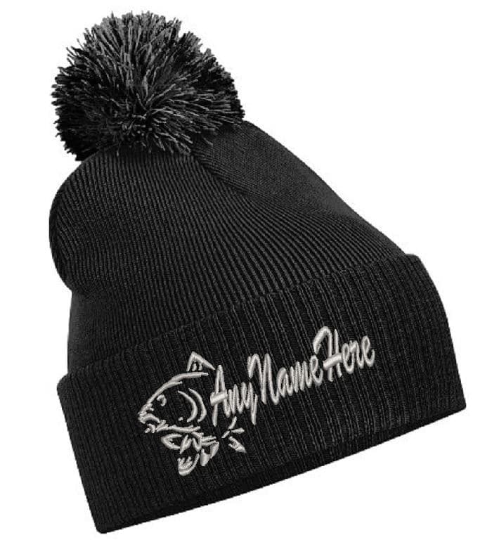 Personalised Embroidered Carp Fishing Bobble Hat.