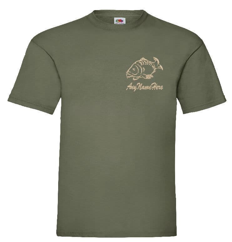 CARP FISHING OLIVE GREEN MEN'S CREW NECK T-SHIRT.