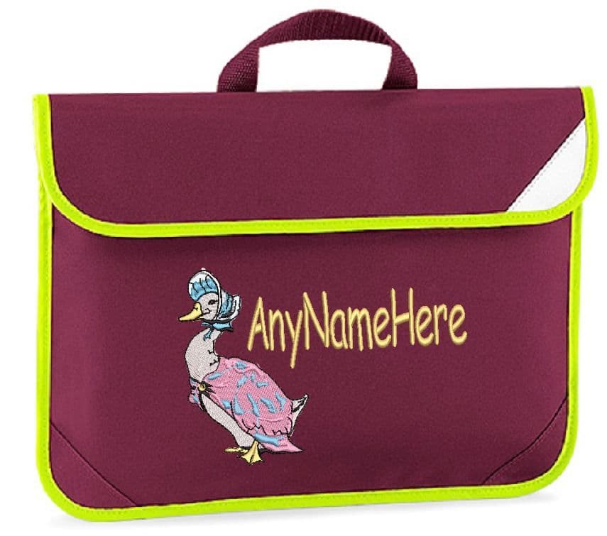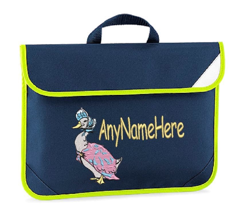 Jemima Puddle Duck design Embroidered Personalised Book Bag.