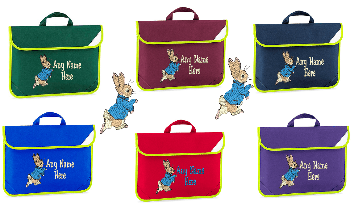 Peter Rabbit design Embroidered Personalised Book Bag.