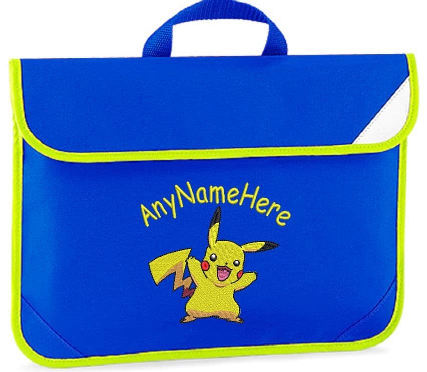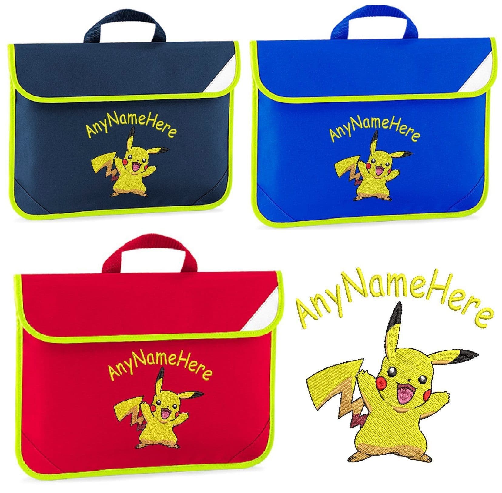 Pikachu (from Pokemon) design Embroidered Personalised Book Bag.