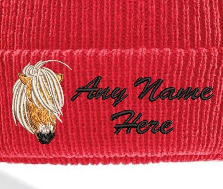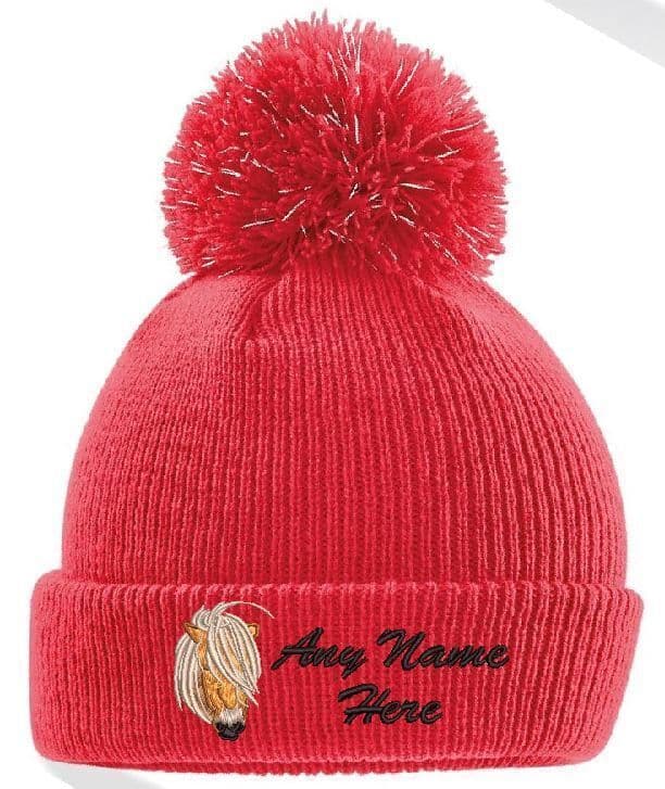 Kids Bobble hat Embroidered Shetland Pony design- Personalised!